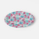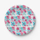 Funky blaue und rosa Blume mit blau-rosa Polka-Punkten auf Tellern mit weißem Hintergrund.