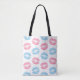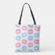 Elegantes, stilvolles und raffiniertes Muster mit blauen und rosa Lippen auf weißem Hintergrund. Modernes und trendiges Geschenk, perfekt für den Makeup-Liebhaber in Ihrem Leben.