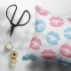 Elegantes, stilvolles und raffiniertes Muster mit blauen und rosa Lippen auf weißem Hintergrund. Modernes und trendiges Geschenk, perfekt für den Makeup-Liebhaber in Ihrem Leben.