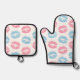 Blaue und rosa Lippenmuster, Lipstick, Kiss Ofenhandschuh & Topflappen-Set