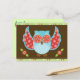 Blaue und rote Eule auf brauner und grüner Postkar Postkarte