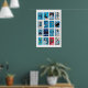 Blaue und schwarze Matchbox-Etiketten-Collage, min Poster