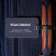 Modern und Chic, kennzeichnet dieser Gepäckumbau eine silberne Karte des Imitats Welt. Fügen Sie Sie Namens- und Adresse der Rückseite für einen wirklich personalisierten Gepäckumbau hinzu.