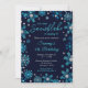 Diese elegante und glamouröse Einladung bietet Aquarellblau und silberne Imitate Glitzer Schneeflocken und Glitzern auf marineblau Hintergrund. Es eignet sich perfekt für eine Geburtstagsfeier im Winter oder Weihnachten.
