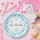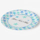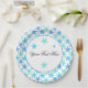 Blaue und türkisfarbene Seesterne auf weißem Hintergrund, perfektes Sommermuster mit individuellem Text