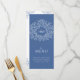 Mitten in Blau und Weiß wird das Abendmenü für Hochzeiten serviert. Bearbeiten Sie dieses 4-Gänge-Menü mit der eigenen Menüoption. Einfache, aber moderne handgezeichnete Blätter und Monogramm-Design. © Original zeichn und Design von Sarah Trett für www.mylittleedenweddings.com exklusiv auf zazzle.