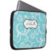 Diese stilvolle blaue und weiße Blumendamastlaptophülse hat eine Textbox, damit Sie mit Ihrem eigenen Namen, Initialen, Handelsnamen oder anderem Text besonders anfertigen. Wenn Sie irgendeine besonders anfertigende Hilfe benötigen, emailen Sie bitte niteowlstudio@gmail.com.