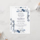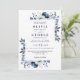 Diese elegante marineblaue und weiße Blumen-Hochzeitseinladung kann personalisiert werden mit Ihren Informationen in der modernen Typografie und all Ihren besonderen Hochzeitstag Informationen auf der Rückseite, einschließlich Ihrer UAWG, Unterkunft und weitere Details. Entwickelt von Thisisnotme©
