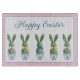 Dieses personalisierte Osterglas-Schneidebrett zeigt niedliche Häschen-Kaninchen-grüne Topiaries mit rosa, blauen und gelben Schleifen in blau-weißen Chinoiserie-Blumentöpfen. Personalisieren Sie es mit Ihrem Namen oder einem speziellen Text auf der Vorderseite. Perfekte Dekoration für Ihre Feiertagsfeier.
