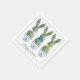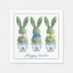 Diese Oster-Papierparty-Servietten zeigen niedliche Häschen-Kaninchen-grüne Topiaries mit rosa, blauen und gelben Schleifen in blau-weißen Chinoiserie-Blumentöpfen. Personalisieren Sie die Feiertagsbotschaft mit Ihrem Wunschtext.