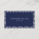 Ein blau-weißes Paisleymuster schmückt die Kanten dieses klassischen Visitenkartendesigns. © 1201AM CREATIVE