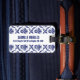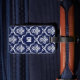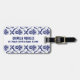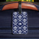 Vintager Damast, blaue Typografie in Blau und Weiß.