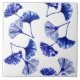 Blau-weiße Drucke sind klassisch. Dieses blaue und weiße Design zeichnet sich durch ein Allovermuster von Gingko-Blätter aus. Dieses Allover-Muster eignet sich hervorragend für die Badezimmerwand oder einen dekorativen Rahmen in der Küche.