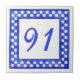 Ein Hand gezeichneter blauer und weißer checkered Rahmen um eine blaue Hausnummer auf einem weißen Hintergrund mit dunkelblauen Konturen.