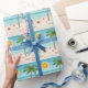 Blaue und weiße Iggin an einem tropischen Sommerst Geschenkpapier