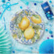Blaue und weiße italienische Aquarellmuster und Zitronen