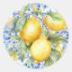Blaue und weiße italienische Aquarellfliesen und Z Runder Aufkleber