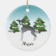 Blaue und weiße italienische Windhunde im Winterwa Keramik Ornament