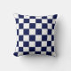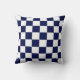 Ein Kissen mit marineblau-weißem Schachbrettmuster. Passen Sie die blaue Farbe des Schiffes an, die Mustergröße unter anderen Optionen.