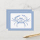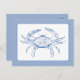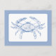 Diese Postkarte ist mit einer klassischen Küstenkrabbe in Blau- und Weißtönen gestaltet.