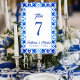 Blaue und weiße marokkanische Hochzeit Tischnummer