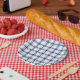 Blaue und weiße Nautikplaid Pappteller