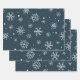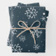 Navy blaue und weiße Schneeflocken verpacken Papierblätter.