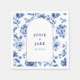 Mit den Namen des Paares und dem Hochzeitsdatum in einem eleganten Bogenrahmen. Das aufwändige blau-weiße Blumendesign, das von der holländischen Delsoftware inspiriert wurde, umgibt den Bogen elegant und schafft ein elegantes und zeitloses Ambiente. Diese Servietten sind perfekt für Hochzeiten mit Vintagem oder raffiniertem Thema geeignet und bieten sowohl Schönheit als auch Praxisnähe und machen sie zu einer unvergesslichen Ergänzung zu Ihrem besonderen Tag. Das verzierte Design bringt eine Touch von Luxus und sorgt dafür, dass sich Ihr Empfang sowohl stilvoll als auch persönlich fühlt.