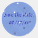 Blau-weiße Sterne auf hellblau bläst Hintergrund mit einem Platzhalter für das Datum, wird auf benutzerdefinierten Aufklebern gedruckt. Passen Sie den Text im Vorlagenformular einfach an. Vielen Dank für Ihren Einkauf bei CherylsArt auf Zazzle.