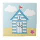 Blaue und weiße Strandhütte Fliese