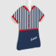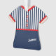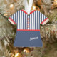 Blau-weiß gestreiftes Shirt, passender blauer Rock, rot getrimmt... zeigt den Namen Ihres Liebsten. Auf der Rückseite ist ein kleines Herz "Tattoo" in weiß, mit der Formulierung "Weihnachten 20xx" in rot. Name und Text sind vollständig editierbar, und Sie können auch den Schriftart und die Textfarben ändern.