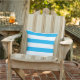 Set von der Sommerterrasse oder der Innendekoration mit diesem hellen Himmel Blau und Weiß Streifen Außenkissen. Anpassen an jede Farbe. Beide Seiten des Kissens sind blaue und weiße horizontale Streifen, die ein einfaches modernes Design verleihen.
