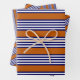 Blaue und weiße Streifen mit verbrannter Orange Geschenkpapier Set