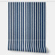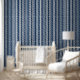 Die Tapete ist einfach, klassisch und stilvoll und weist senkrechte, blau-weiße Streifen auf.
