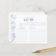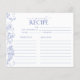 Dieses trendige Rezept-Kartendesign, das auf die französische Viktorianische Blumendusche "Blue & White" abgestimmt ist, zeichnet sich durch hübsche handgeschriebene Schriftzeichen, klassisch handgezeichnete Viktorianische Blumenmuster aus Blume, Bienen und Schmetterlingen sowie moderne handgeschriebene Kalligraphie aus. Alle Rezepte, die benötigt werden, um Lieblingsrezepte mit der zukünftigen Braut zu teilen! Alle Textfelder, mit Ausnahme der proprietären Designtypografie, können bei Bedarf bearbeitet werden. BITTE BEACHTEN SIE: DIESE RECIPE-KARTE WIRD NICHT IN DER QUADRATIE-INVITATION-UMGEBUNG PASSIERT, ALSO MÜSSEN SIE DIE VERTIKALE 12x18"-ENTWICKLUNG DER ENTSPRECHENDEN EINLADUNG BESTELLEN, UM MIT DIESER REZIPE-KARTENansicht-Suite hier zu GEHEN: https://www.zazzle.com/collections/french_blue_white_victorian_floral_bridal_shower-119265327422133417 Kontaktieren. Copyright Surridge Design Co. für Elegant Invites, alle Rechte vorbehalten.