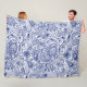 Blaue und weiße Vintage Blütenpalette Fleecedecke