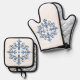 Blaue und weiße Vögel scrollen Muster Ofenhandschuh & Topflappen-Set