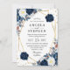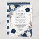 Blaue und weiße Winter-Blume Goldrahmen Hochzeit Einladung