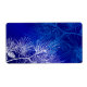 Winterurlaubskunst mit eleganten Kiefernbäumen und Pinecones in Blau und Weiß auf eisigem Hintergrund von Blues und Violett.