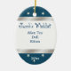 Ein großartiges Ornament, um sich an das zu erinnern, was die Kleinen für Weihnachten wünschten. Es ist blau mit weißen Sternen oben und unten. Eine Grafik eines silbernen Farbbands befindet sich oben und unten. Die Mitte ist weiß mit blauem Text. Du passt die Geschenkliste Deiner Kleinen an.