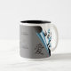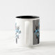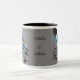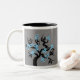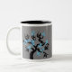 Liebesvögel auf Sakura Baum und chinesische Liebe Symbol Tasse. Eine hübsche Tasse mit einem asiatischen Flair mit zwei Liebesvögeln auf einem blühenden Sakura-Baum mit blauen Blüten unter einer grauen, geschwungenen Seite und dem Symbol für die chinesische Liebe auf der rechten Seite und einem weiteren Sakuralbaum auf den links. Personalisieren Sie es mit Ihrem Text.