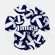 Dieses Volleyballgeschmuck wird vorne und hinten mit dem Bild eines Haufen verschiedener Größen von blau-weißen Volleybällen bedruckt - ganz nach dem Namen des Athleten auf der Vorderseite und dem Gedenkjahr auf der Rückseite - von katz_d_zynes