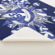 Das niedliche Volleyballspiel Sherpa-Fleece-Decken zeigt eine "Explosion" von blauen und weißen Volleybällen in verschiedenen Größen und blauen und grauen Sternen und weißen Polka-Punkten auf dem blauen Stern, alles auf einem individuell anpassbaren dunkelblauen Hintergrund - die blauen Paneele der Volleyballs werden mit einem gürtelartigen, blumenkaleidoskopischen Muster vermischt - passen sich mit dem Spielernamen Namen und Jersey. Zahl: katz_d_zynes