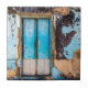 Während ich durch die Straßen der kleinen Dörfer der Kapverdischen Inseln spaziere, got ich überwältigt von der unglaublichen Mischung aus Farben, Texturen und Materialien, die wunderschöne Möglichkeiten für städtische Fotografien bietet. Auf diesem Bild: blaue, beige und braune Wand und blaue Tür.