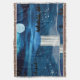 Abstrakte Landschaft von einem Wasserfall mit einem Kaskadengefälle mit einem Mond, Vögeln, Nachthimmel und Sternen.