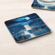 Abstrakte Landschaft von einem Wasserfall mit einem Kaskadengefälle mit einem Mond, Vögeln, Nachthimmel und Sternen.