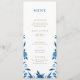 Blaue Wasserfarbe Chinoiserie Hochzeitsmenü Menükarte