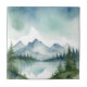 Blaue Wasserfarben und grüner Pinienwald Fliese