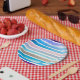 Blaue Wasserfarbenstreifen, handbemalt Pappteller
