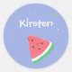 Blaue Wassermelone-individuelle Name Runder Aufkleber